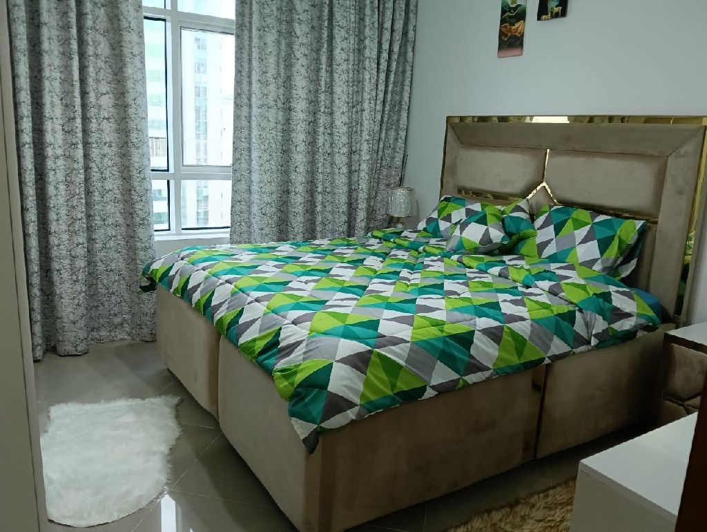 Two bedrooms, a living room, a hallway, three bathrooms, a balcony, a stunning sea view, a clean building, a prime location, all kitchen appliances and electrical appliances included. AED6000 with internet only, excluding electricity. AED1000 security deposit. Furniture warranty and payment of the electricity bill