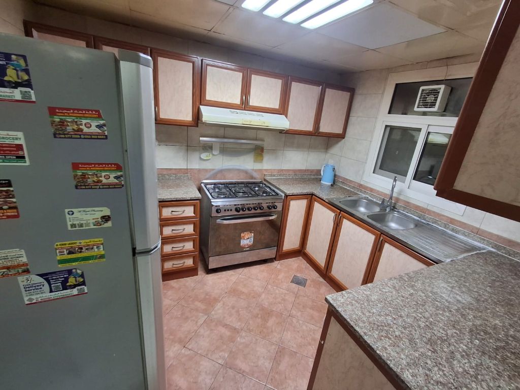 One - bedroom apartment with a living room and two bathrooms, very spacious, in Sharjah, Al Taawun area, near Oriana Hospital, Dubai exit, close to all services. Fully equipped kitchen. Direct from the owner, no commission. Two - bedroom apartments with a living room are also available at competitive prices and with spacious layouts. For inquiries, please call