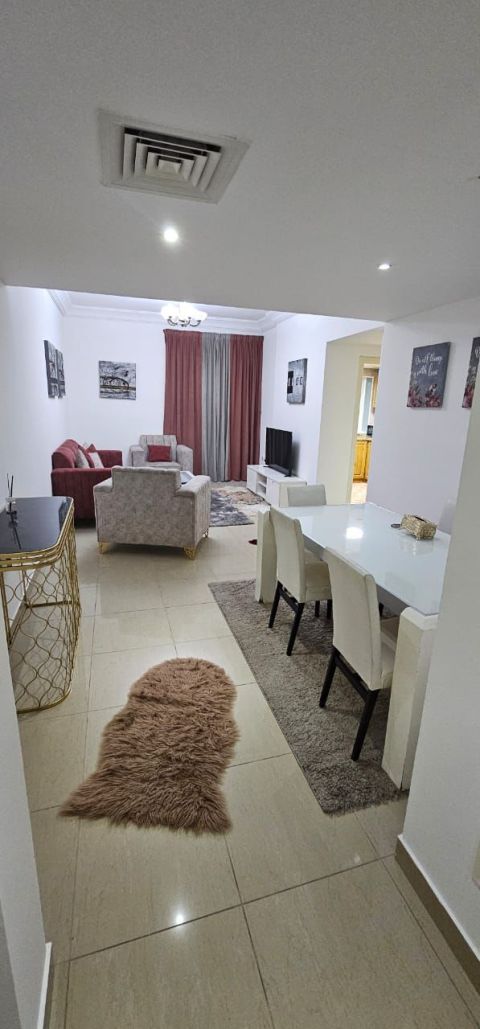 Newly furnished, super deluxe, two - room apartment with a living room, with a balcony and a distinctive view of Al Mamzar, the sea, directly in Sharjah, Al Taawun, Al Mamzar. monthly rent at a snapshot price 7000 with internet and parking. A car in the tower. three bathrooms and a large kitchen with all electrical appliances and all kitchen utensils. Contact