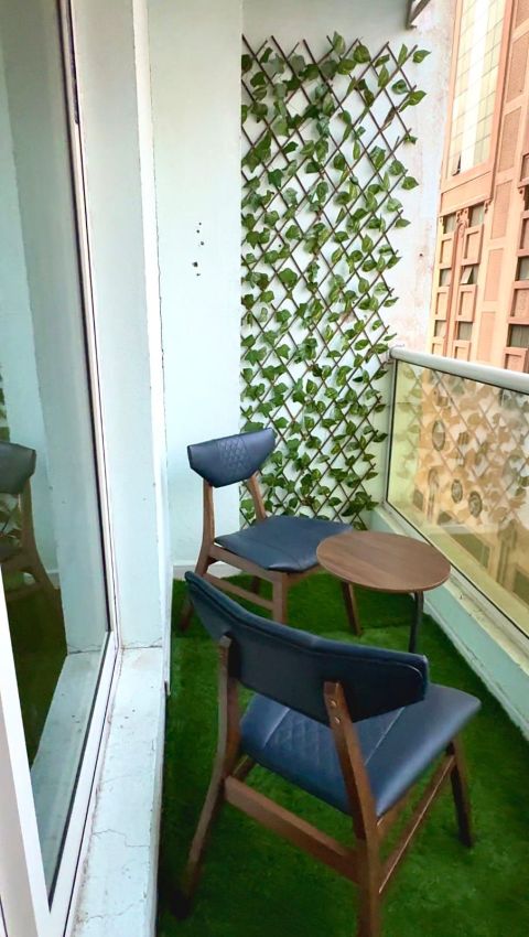 Furnished one - bedroom apartment with a living room in Al Taawun, Sharjah, featuring a balcony and an open view below the tower. Excellent furnishings and a good size. rent is AED4200 including internet. Immediate booking and occupancy