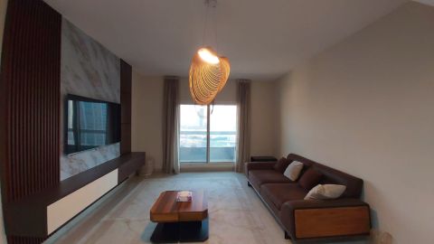 Brand new, never lived in. Two bedrooms, living room, large maid's room, balcony with a beautiful view of Sharjah. High floor. Spacious kitchen. VIP master bedroom. Brand new furniture and brand new occupancy. Price AED6500 including internet