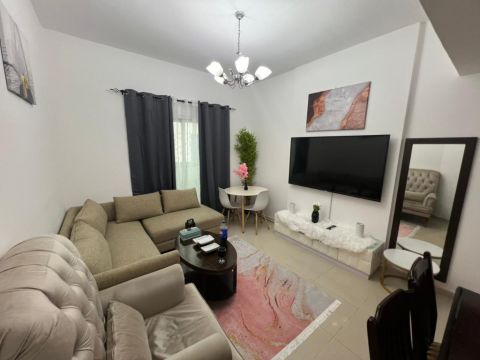 The largest and most beautiful furnished apartment in Al Khan neighborhood in the Emirate of Sharjah. It has a large room and a hall with modern and new finishing, a bathroom, a fully equipped kitchen, and a hall with modern finishing. For monthly rent at an amazing price. First occupant. Close to the Dubai exit and near the mosque and the women'park