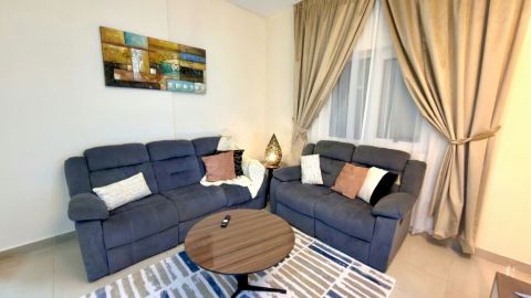 أول ساكن للإيجار الشهري غرفة وصالة في منطقة الخان (مقابل كافيتريا شباب الخان) الشقة فرشها أول ساكن جديد بناية حديثة تتميز بموقعها القريب من مخرج دبي للإيجار الشهري بسعر 6000 شامل جميع الفواتير (دون الانترنت)