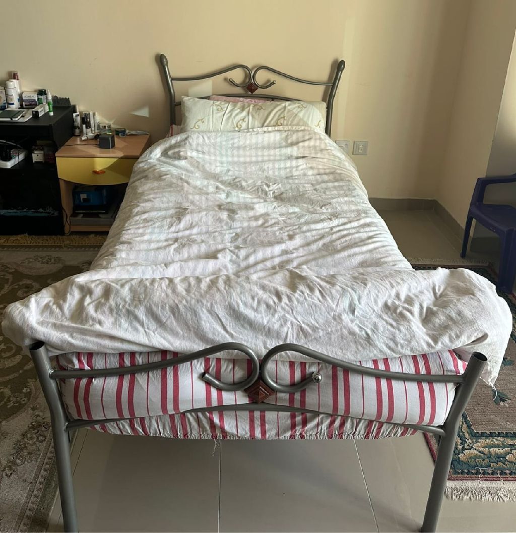 سرير سنجل حديد للبيع مع المرتبه فقط 100 درهم لسرعة البيع
