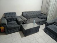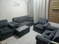 طقم كنب ثقيل بمثابة الجديد نظافة عالية لون مميز لغرف الاستقبال يحتوي على كرسيين مفردين وكرسي دبل وكرسي لثلاث أشخاص، ويتضمن أيضا طاولة توضع في الوسط، والسبب الرئيسي للبيع العودة لأرض الوطن، والسعر 850 درهم وقابل للتفاوض للتواصل على الرقم