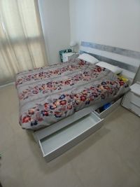متوفر سرير كينغ أبيض خشب ممتاز مع أربع ادراج للتخزين تحته، وتسريحة كلاسيك. للبيع ب 1000 درهم مع الفرشه بدون الفرشه للقطعتين 700 درهم