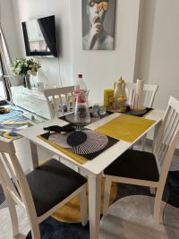 للبيع صوفا 350 وطاولة تلفزيون 200 وطاولة طعام 250 وطاولة بلوتوث بجانب السرير 300 وسرير مع فرشة طبية 800
