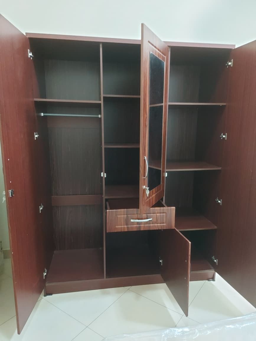 Room Set in amazing condition barely used - 1 x Triple door Wooden wardrobe. Dimensions 150Lx56Wx200H 1 x Bed size 195Lx120W 1 x bedside table size 40*40 with key Price AED700