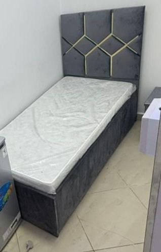 A new bed with a new mattress that is still in its bag that is not used at all Available 3 colors blue, gray and one on 250 beds is also not used