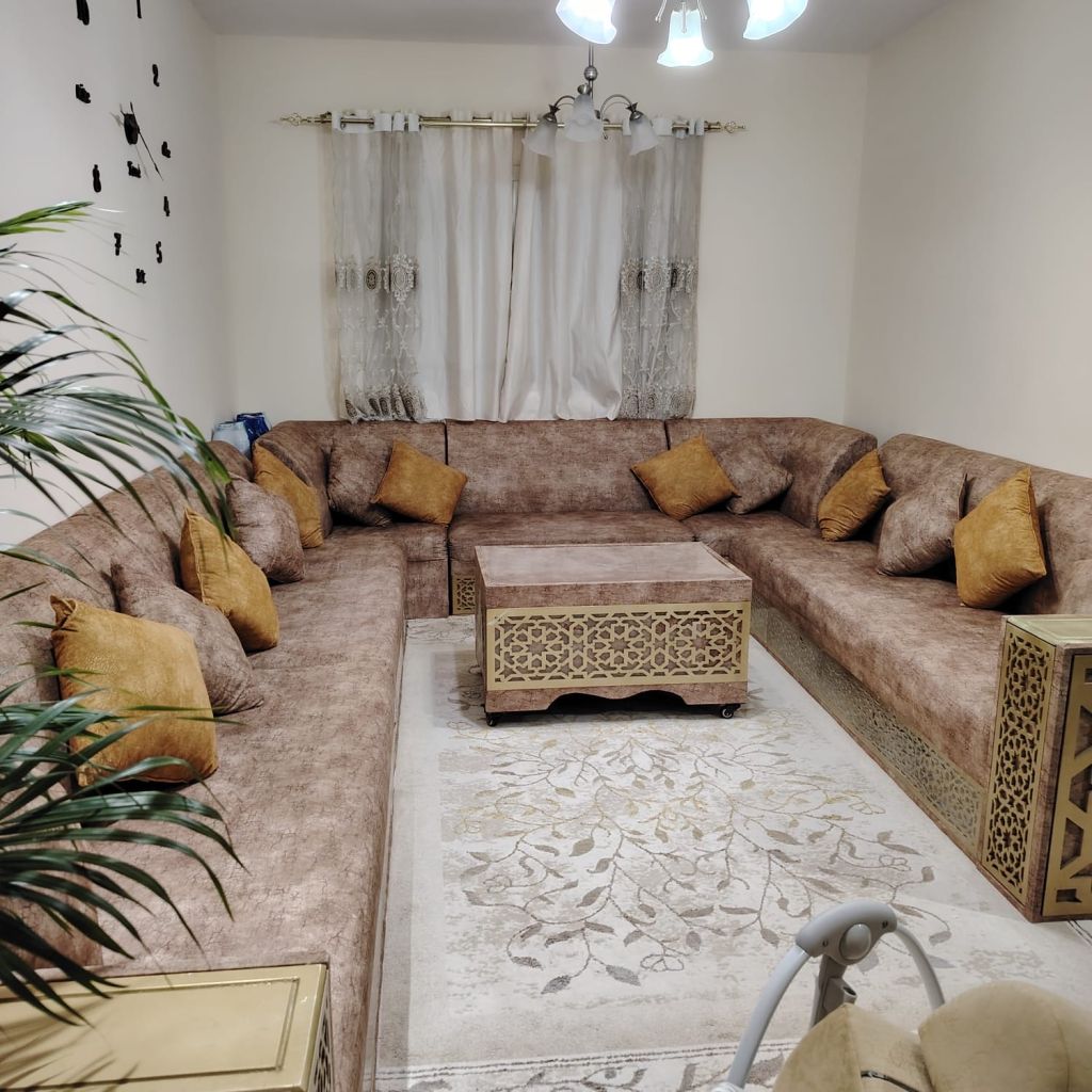 An 11 - meter Majlis set is available for sale, either as a complete set or in separate pieces. It includes 9 pieces with the following dimensions 2 pieces (220 cm) 2 pieces (120 cm) 2 pieces (60 cm) and 2 corner pieces (85 cm) in addition to a table