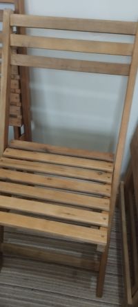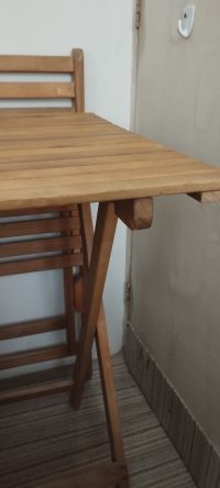A table and two chairs for gardens, parks, or balconies, made of genuine wood, lightly used, for 120 dirhams
