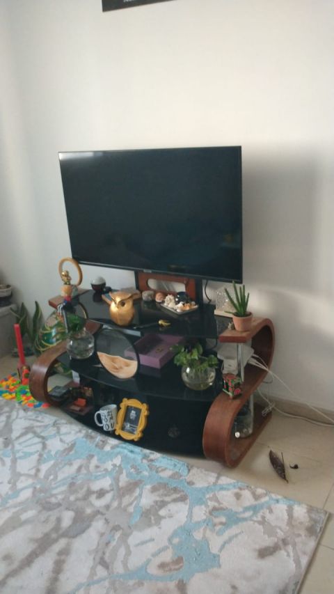 For sale TV stand in excellent condition, made of heavy glass and solid wood with a modern, elegant design that suits all tastes. Lightly used ready to use and adds a classy touch to any living room. Price AED300 (final price, due to travel)