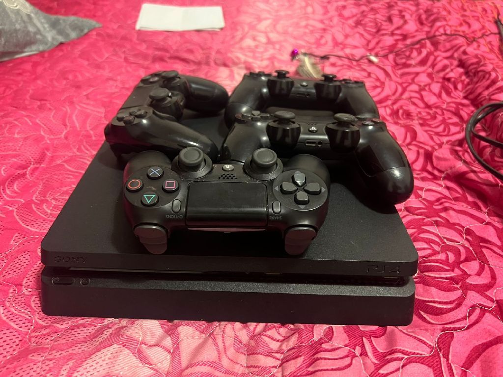 للبيع جهاز بلاي ستايشن فور PS4 معه 4 مسكات تحكم ولعبتين (فيفا 2025 / pes 2018) الجهاز استعمال بسيط مطلوب فيه 750 درهم منهي من الآخر موجود في الشارقة المجاز 3