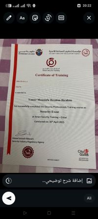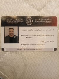 اسمي ياسر حصل علي أمام التدريب الأمني حارس أمن متخصص ملاكم حصل علي بطولات دولية خبرة 10 سنوات في مجال الأمن