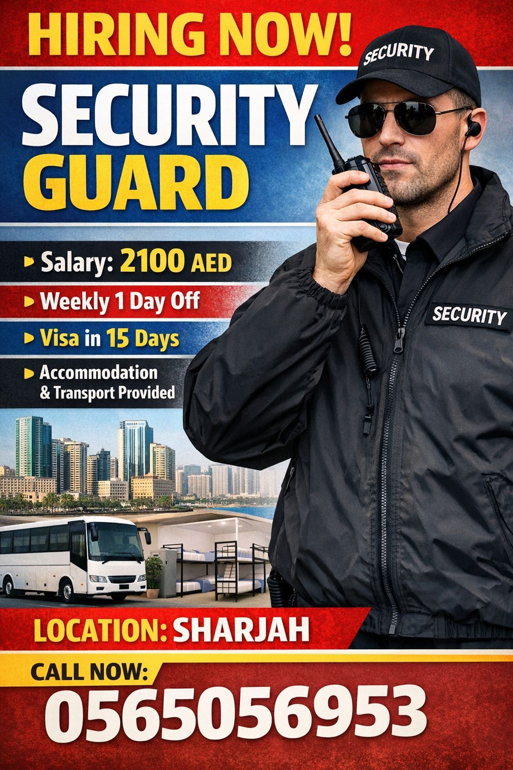 SO WE ARE Currently HIRING FOR Security POSITION WITHOUT SIRA Salary WILL (2000 - 2500) PLUS OVERTIME. DUTY HOURS 10 HOURS 1 HOUR BREAK TIME WEEKLY 1 DAY OFF. ACCOMANDATION, TRANSPORT, Visa, MEDICAL AND UNIFORM PROVIDED BY Company IN UAE Masfut Al Zahya