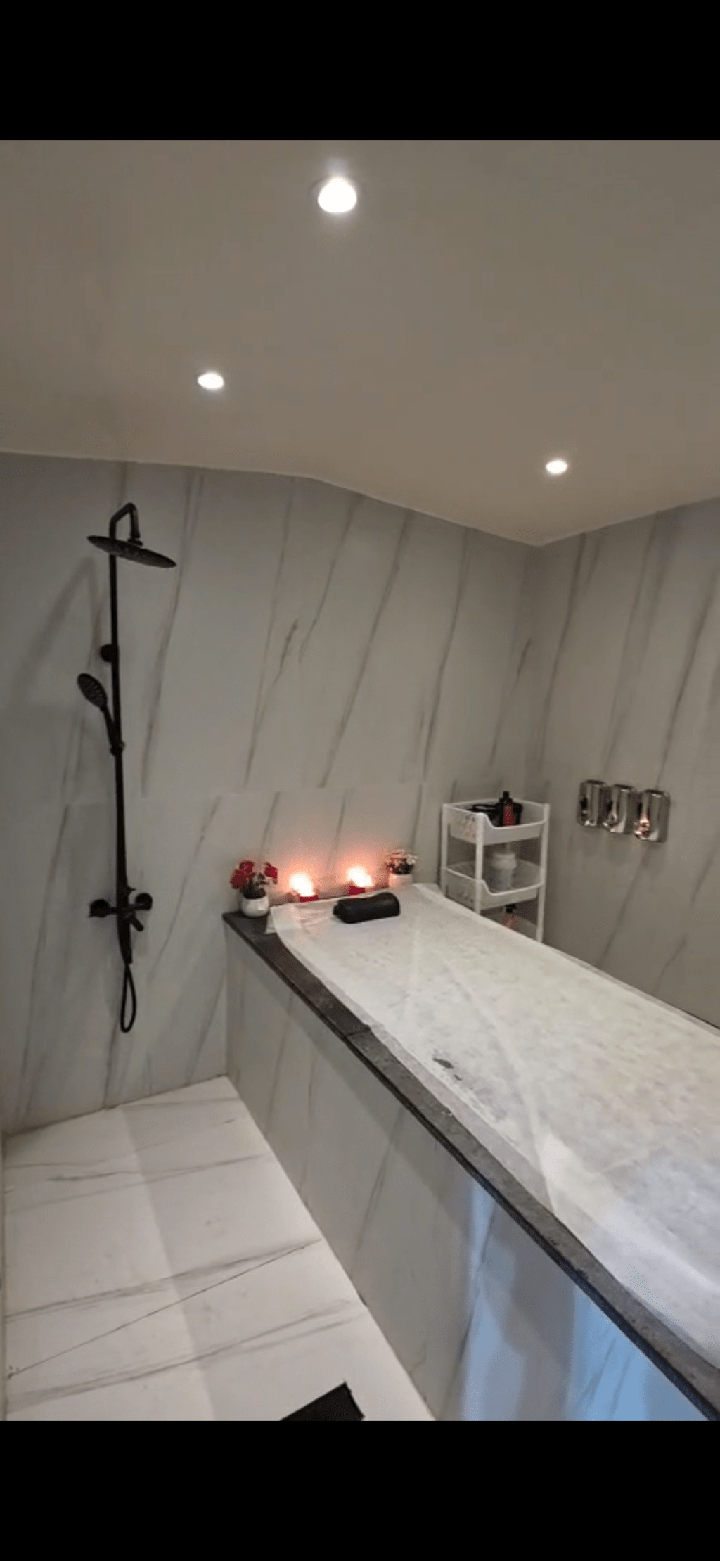 We have a Moroccan bath available in Sharjah, Al Majaz 3, behind Khaleeji and Shamsin Bakeries. Relax and detox with a Moroccan herbal bath foreman This treatment includes Moroccan black soap, a full - body exfoliation using a Kessa glove, and a nourishing herbal body mask. It revitalizes, softens, and restores the skin's natural textureideal for complete rejuvenation. Golden Mouss salon, Branch