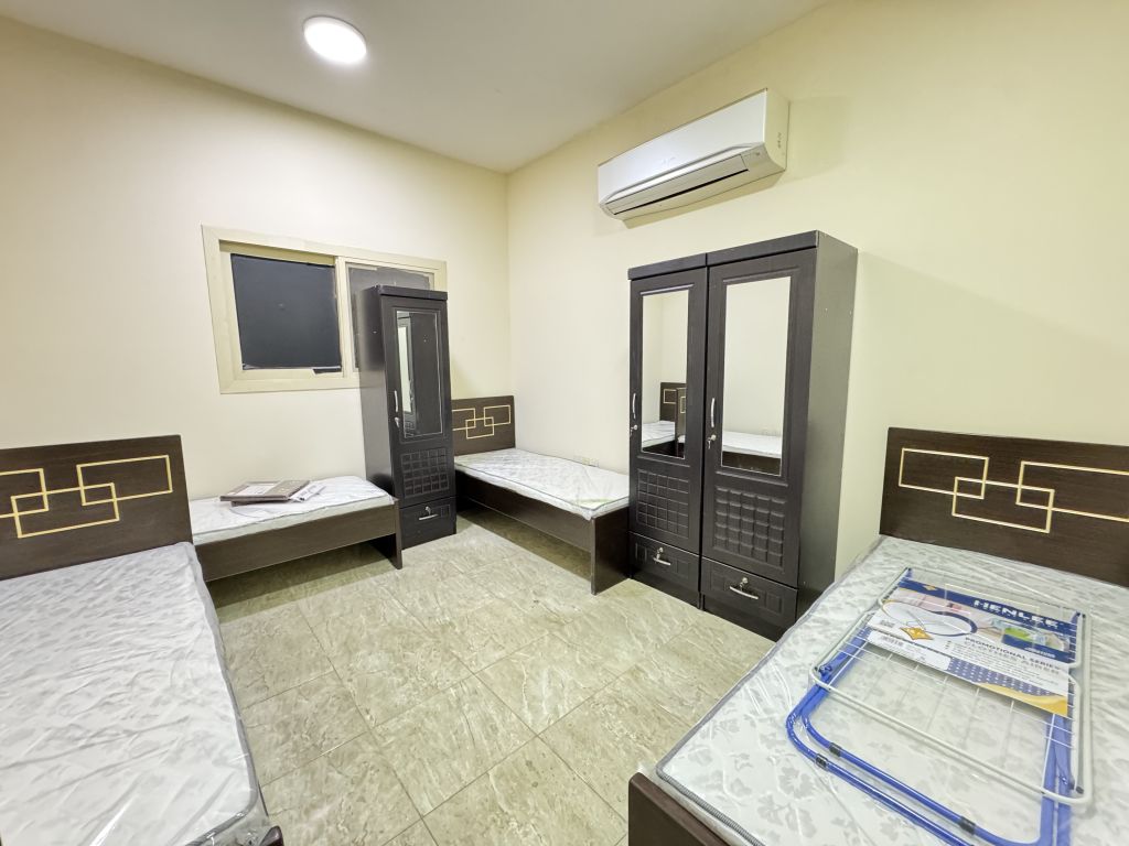 8 خزائن، 8 سراير، غسالة واحدة، وثلاجة واحدة وفرن واحد