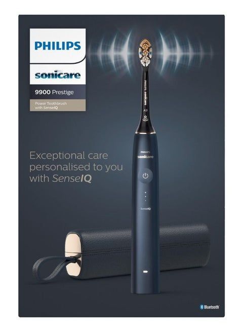 فرشاة أسنان كهربائية قابلة لاعادة الشحن من فيليبس سونيكير 9900 بريستيج مزودة بتقنية SenseIQ وتطبيق سونيكير المدعوم بالذكاء الاصطناعي اللون أزرق داكن - HX9992 / 22 السعر أون لاين 1250 مطلوب 950 فقط ويوجد كمية