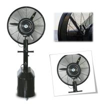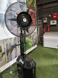 Climate Plus fans, this misting fan has been equipped with some upgrades in look and technology. A new independent fast centrifugal misting disc motor, reliable and easy to maintain. Upgraded by completely new strong grill with cast ring. And the fan motor is more efficient, produces lower heat and water splash protected (1) Add to this that it has a bigger tank capacity with whole 52 liters