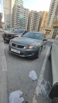 Honda Accord 2012 with 134,000 km mileage. Features include leather seats, electric seats, camera, large screen, and parking sensors. Full ownership and complete service. Price: 15,000 AED. Location: Sharjah, Al Majaz.