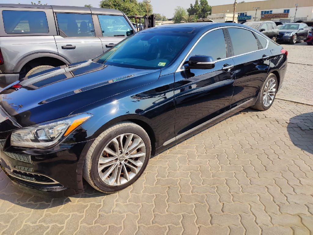 للبيع: جينيسيس 2015 بمحرك 3.8 لتر. اللون الخارجي أسود، والداخلية جلد أسود فاخر. السيارة بحالة ممتازة جداً، استخدام راقي ونظيف من الداخل والخارج. المواصفات الكاملة تشمل: تشغيل بصمة ودخول ذكي، مقاعد جلد كهربائية مع ذاكرة، تبريد وتسخين المقاعد، شاشة كبيرة مع نظام ملاحة، نظام صوت ليكسيكون، سنسورات أمامية وخلفية، كاميرا خلفية، مثبت سرعة راداري، نظام مراقبة النقاط العمياء، سقف بانوراما، وجنوط وكالة.