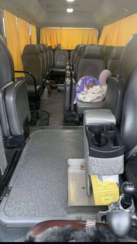 Hyundai County bus model 2009, 26 passengers, beige and gold color, leather interior, in good condition. For contact