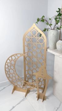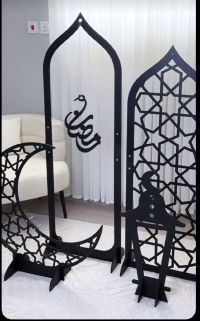 Modern Ramadan Decorations - Special Offer Crescent + Mihrab + Lantern Stand High - quality material, easy to assemble Available in your choice of colors Gold, White, Black, Natural Wood Price AED350 for the full set - Limited Ramadan offer For orders WhatsApp/ Call