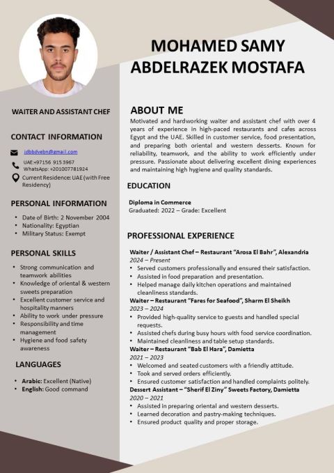 يرجى التواصل معي أطلب عمل في السياحة والمطاعم يرجى النظر لسيرتي الذاتية المرفقة