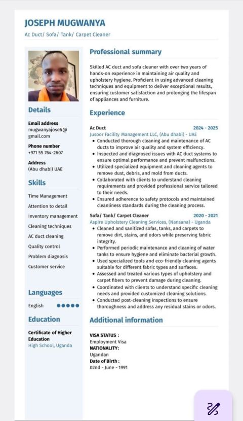Am Sofia from Uganda by nationality am looking for a job as housemaid I have experience in cleaning ironing Nanny washing clothes and cooking Arabic food and l do All house work