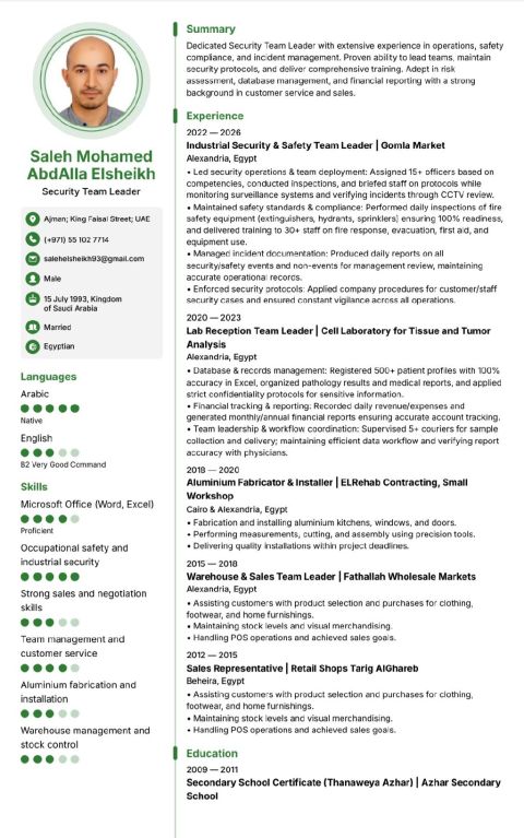 Motivated and responsible Heavy Vehicle Driver with a valid UAE Heavy Driving License, seeking an opportunity to start a professional driving career in Dubai. Knowledgeable about road safety rules, UAE traffic regulations, vehicle inspection, and safe transportation practices. Able to drive heavy vehicles with care, discipline, and attention to safety. Strong willingness to learn, work flexible h