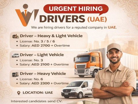 Urgent hiring, driver basic salary if you hav a own id 4000 + salary if you don't hav a own id 2500 basic salary company Benitez 2 years visa, accommodation transportation medical insurance + job if you interested contact me