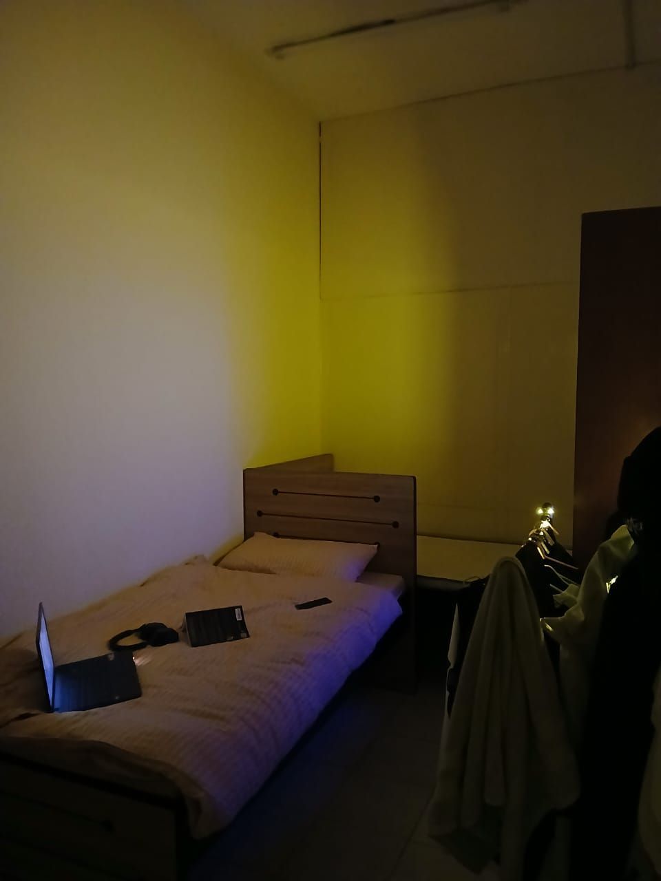 سرير متوفر في غرفة مشتركة (سريران فقط) بسكن شباب نظيف في القاسمية - أبو شغارة. الإيجار شامل الكهرباء والماء والانترنت والتكييف. مكان هادئ مناسب للموظفين. جاهز للسكن. للتواصل