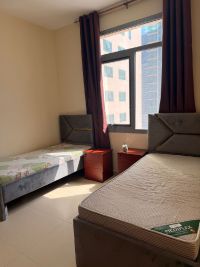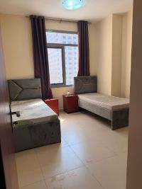 متاح غرفة ثنائية تنفع لشاب واحد أو اثنين مع بعض على مخرج دبي بشقة موظفين عدد 7 فقط في منطقة التعاون. برج راقي وشقة نظيفة والسكن شامل كل شيء