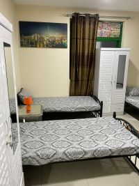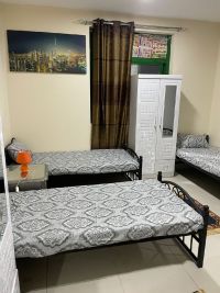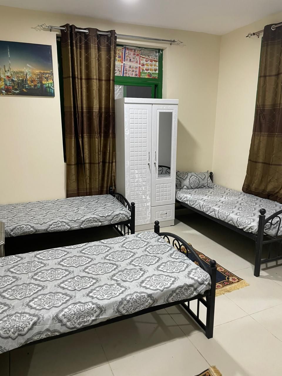 Triple master room for male residents in Al Taawun, in front of Oriana Hospital, with sand parking available. Includes all services and daily cleaning. Price AED750 per bed