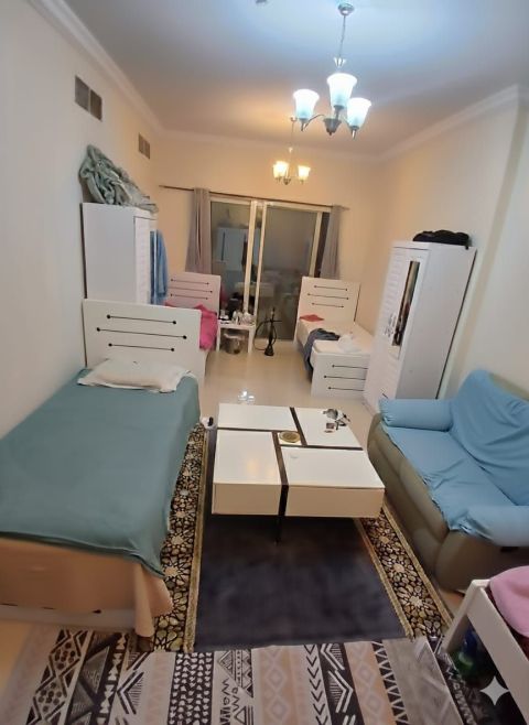 Two beds available for males in a triple room for AED1000 in Al Taawun, behind Day to Day. The apartment is always clean, with high - speed internet and all services included. A quiet apartment for Syrians and employees only, and there is sand parking available. If you want it in a shorter or more formal style, just tell me