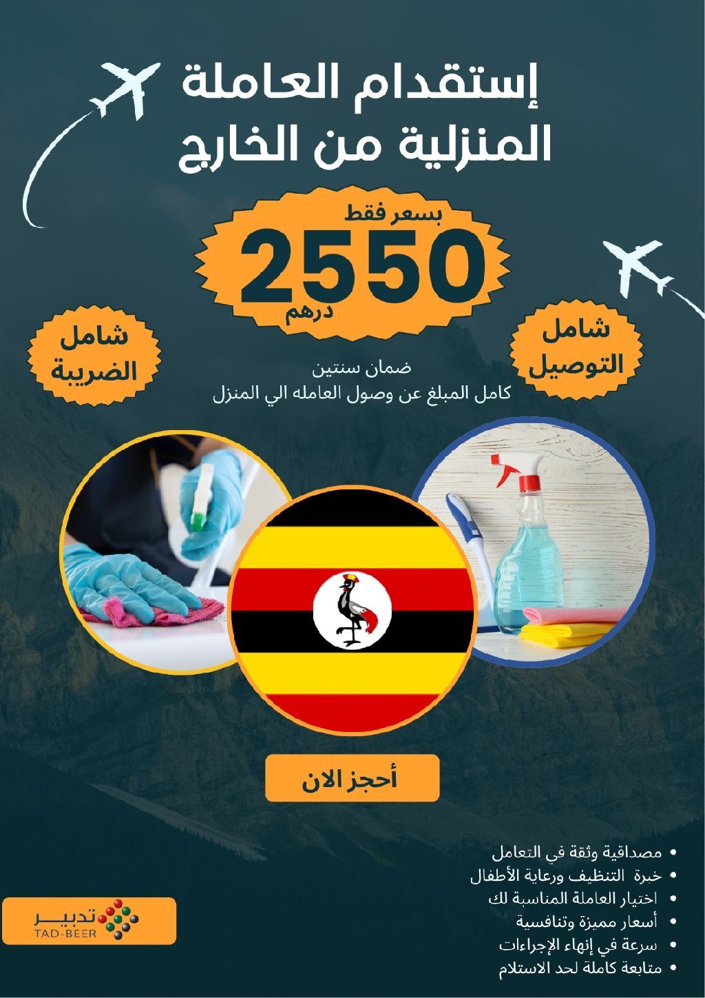 عرض خاص ولفترة محدودة استقدام العمالة المنزلية من جنسية أوغندا 2550 درهم