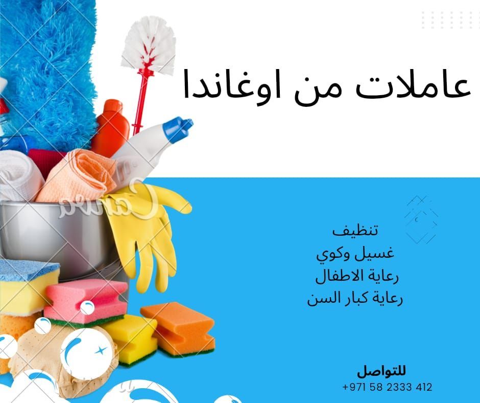 يوجد عاملات من أوغندا خبرة تنظيف ورعاية الاطفال ورعاية كبار السن برسوم 3800 درهم