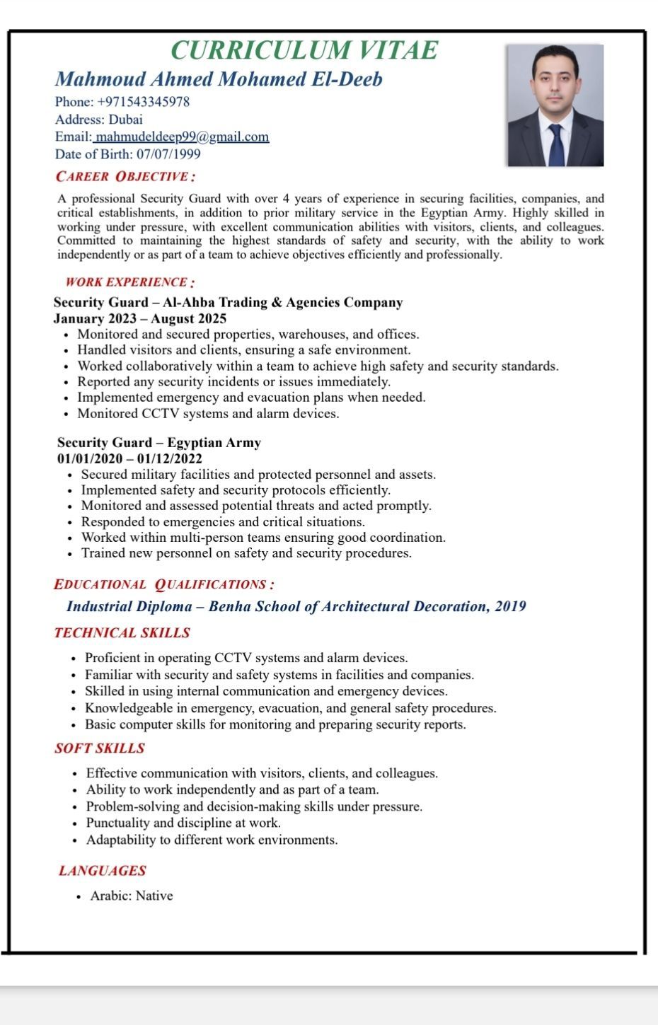 أتقدم لسيادتكم بطلب التوظيف أي وظيفة وأجيد التعامل باحترافية مع الجمهور والالتزام التام بتعليمات العمل. أنا مقيم حاليا داخل دولة الامارات، وأجيد التحدث باللغة العربية (وأساسيات اللغة الانجليزية إن لزم) وأتمتع بالانضباط والجدية والقدرة على العمل بنظام الورديات، أريد التعلم ولعمل بجديه ومتاح في أي وقت