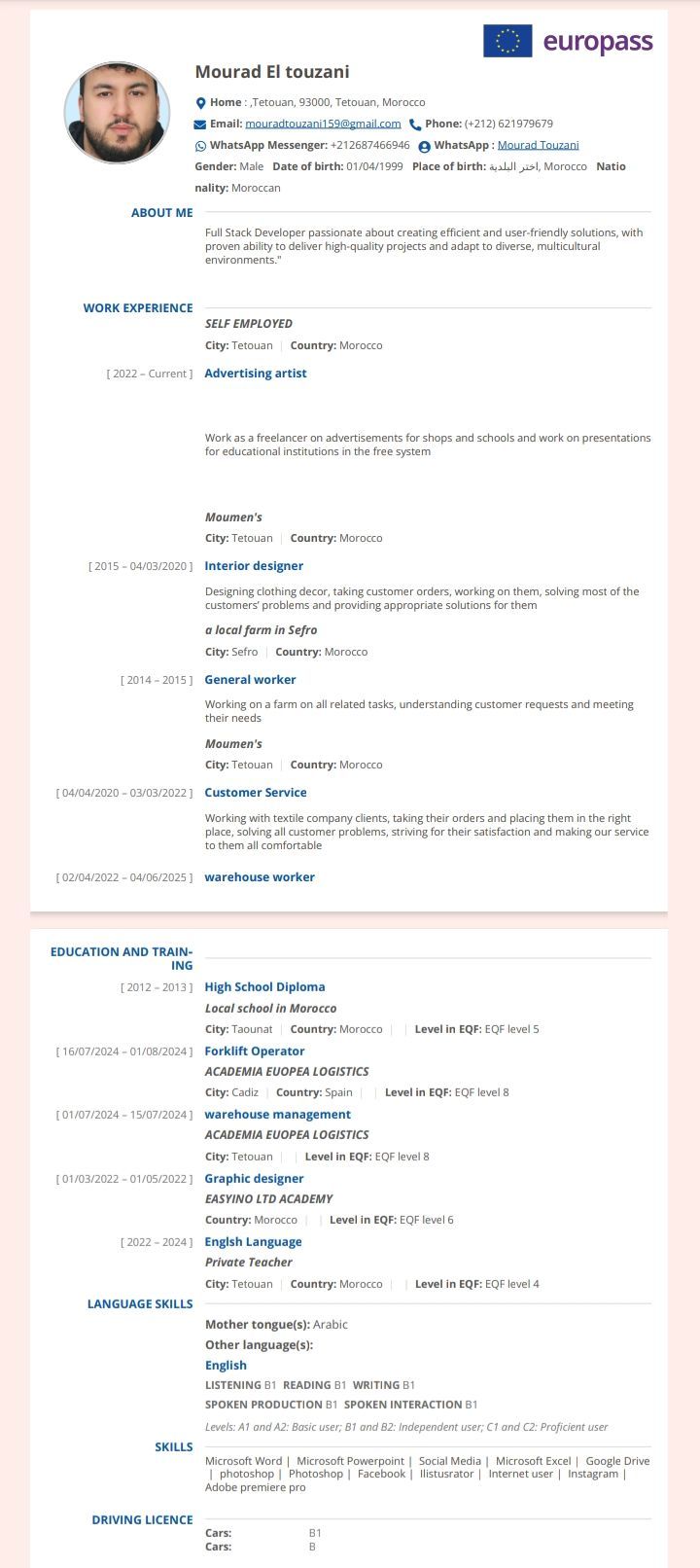 Hello my name is Murad Maghrab I am in the UAE I am looking for a job whether an advertising designer or in fashion or a makeup worker or a driver or a hotel worker you will find my resume in the pictures above and
