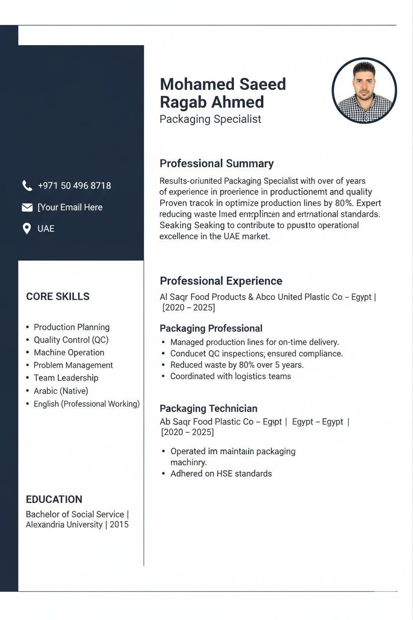 مشرف تعبئة وتغليف في البلاستيك وجميع المنتجات الغذائية أطلب عمل