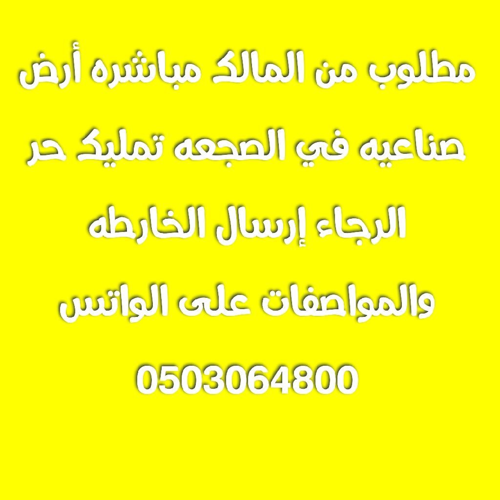 مطلوب من المالك مباشرة أرض صناعية في الصجعة تمليك حر الرجاء ارسال الخارطة والمواصفات