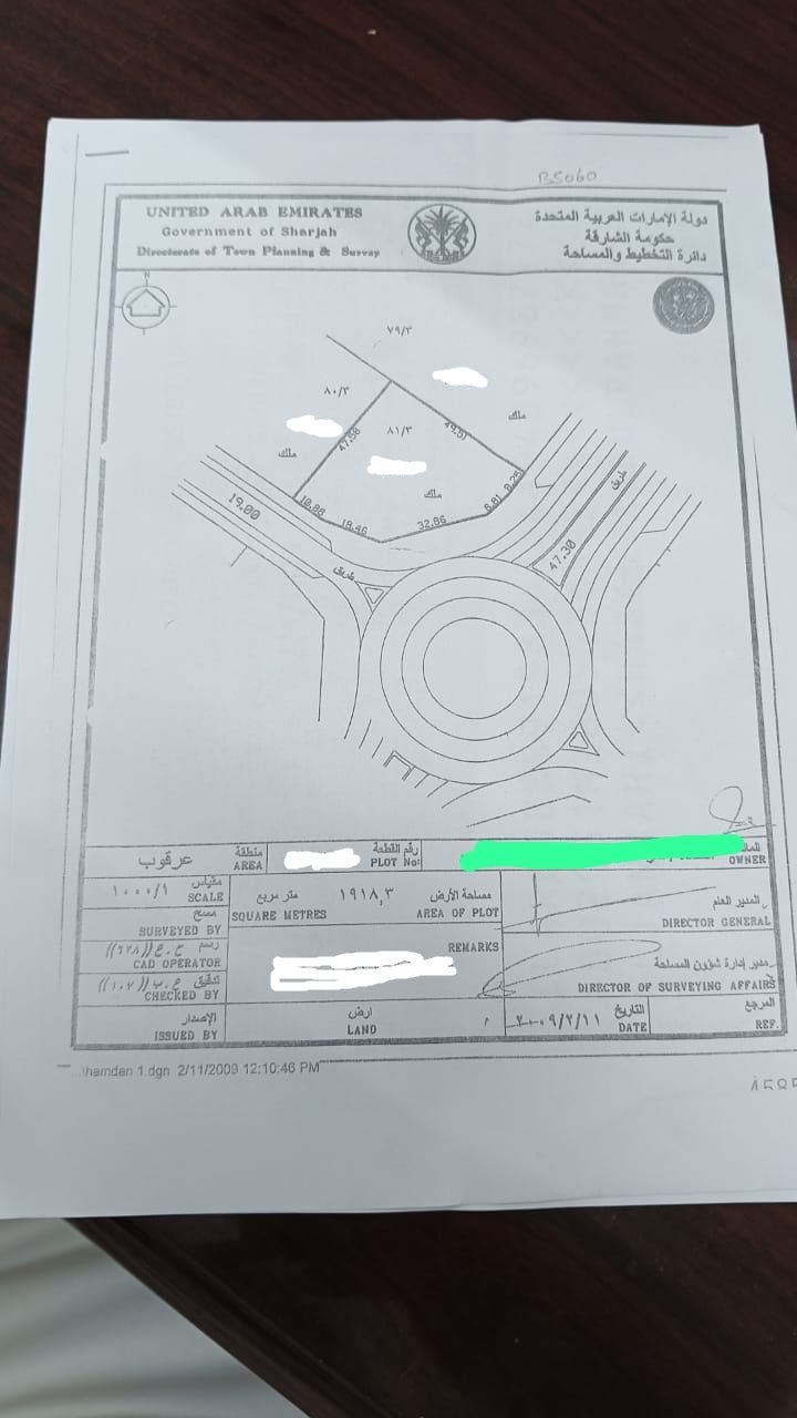 أرض للبيع في الشارقة منطقة العرقوب مساحة 22000 قدم موقع ممتاز زاوية على الدوار مباشرة تملك حر للعرب تملك 99 سنة للأجانب السعر 1850000