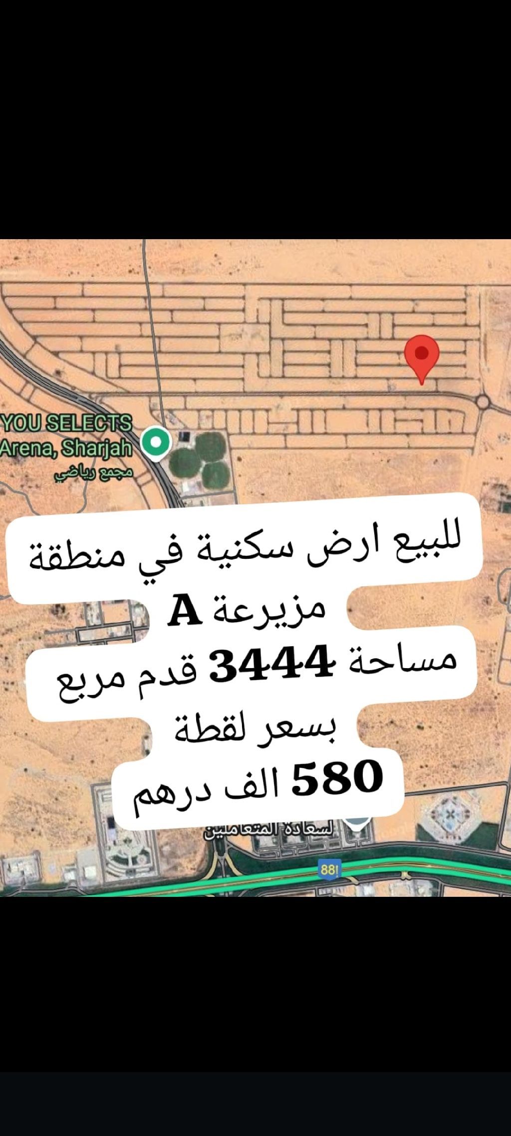للبيع أرض سكنية في منطقة مزيرعة A مساحة الأرض 3444 قدم مربع بسعرر لقطة 580000، ألف درهم للتواصل عالرقم الموجود في الصفحة