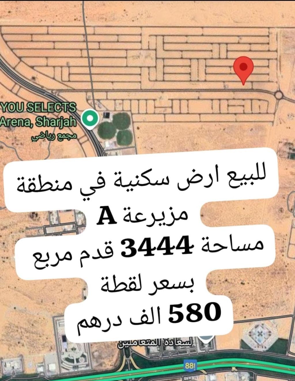للبيع أرض سكنية في منطقة مزيرعة A مساحة الأرض 3444 قدم مربع بسعر لقطة السعر المطلوب 580 ألف
