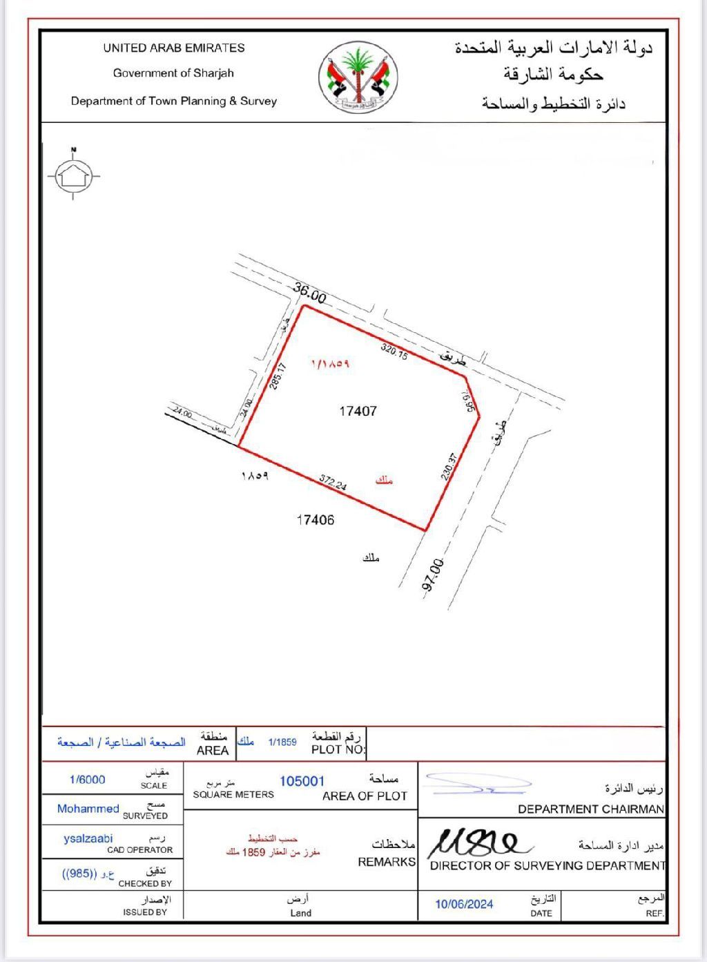 أرض للبيع في الصجعة الصناعية مساحاه 100 مليون قدم سعر القدم 120 درهم نهائي