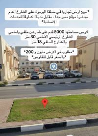 للبيع أرض تجارية في منطقة اليرموك على الشارع العام مباشرة موقع مميز جدا، مقابل مدينة الشارقة للخدمات الانسانية الأرض مساحتها 5000 قدم على شارعين خلفي وأمامي الشارع الرئيسي الأمامي 30 متر والشارع الخلفي 18 متر مطلوب في الأرض مليون و200 والسعر قابل للتفاوض