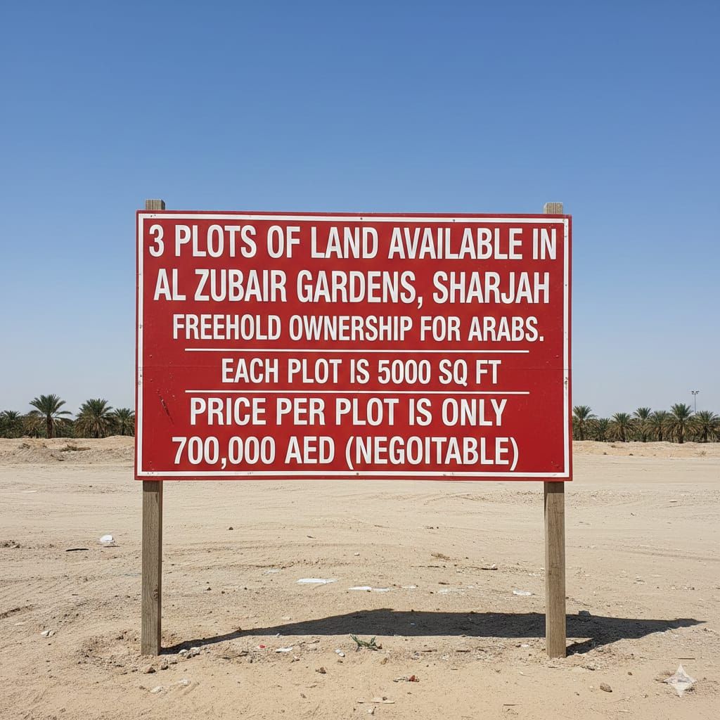 أراضي سكنية للبيع - بساتين الزبير، الشارقة تملك حر للعرب فرصة استثمارية مميزة لامتلاك 3 قطع أراضي سكنية في موقع استراتيجي في بساتين الزبير - إمارة الشارقة، مع امكانية شراء قطعة واحدة أو الاستفادة من السعر الخاص عند شراء الثلاث قطع معا. تفاصيل الأراضي الموقع بساتين الزبير - الشارقة عدد القطع 3 قطع (متاحة الآن) مساحة كل قطعة 5000 قدم مربع التملك حر للعرب موقع مميز قريب من الخدمات السعر المطلوب 700000