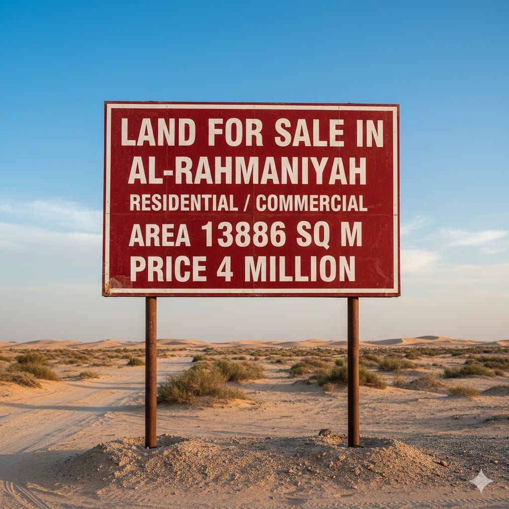 للبيع أرض في الرحمانية على ثلاث شوارع على جسر 5 سكني تجاري المساحة 13886 ألف قدم مطلوب 4 مليون نهائي