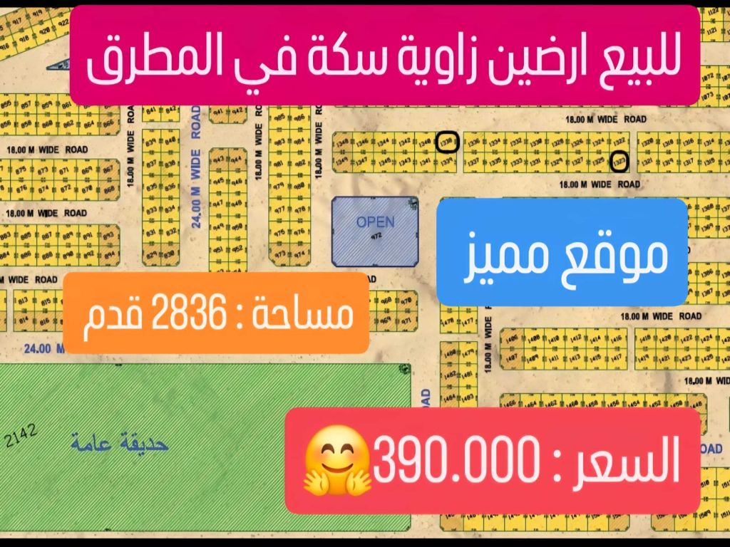 أرضين سكنية للبيع في المطرق - الشارقة تملك حر لجميع الجنسيات العربية فرصة مميزة للتملك أو الاستثمار في واحدة من أكثر المناطق السكنية الواعدة في الشارقة. أرض مميزة زاوية سكة قرب الحديقة العامة تفاصيل الأرض المساحة 2836 قدم مربع تصريح بناء فيلا (أرضي + طابقين) سعر البيع 390000 درهم فقط التملك حر لجميع الجنسيات العربية