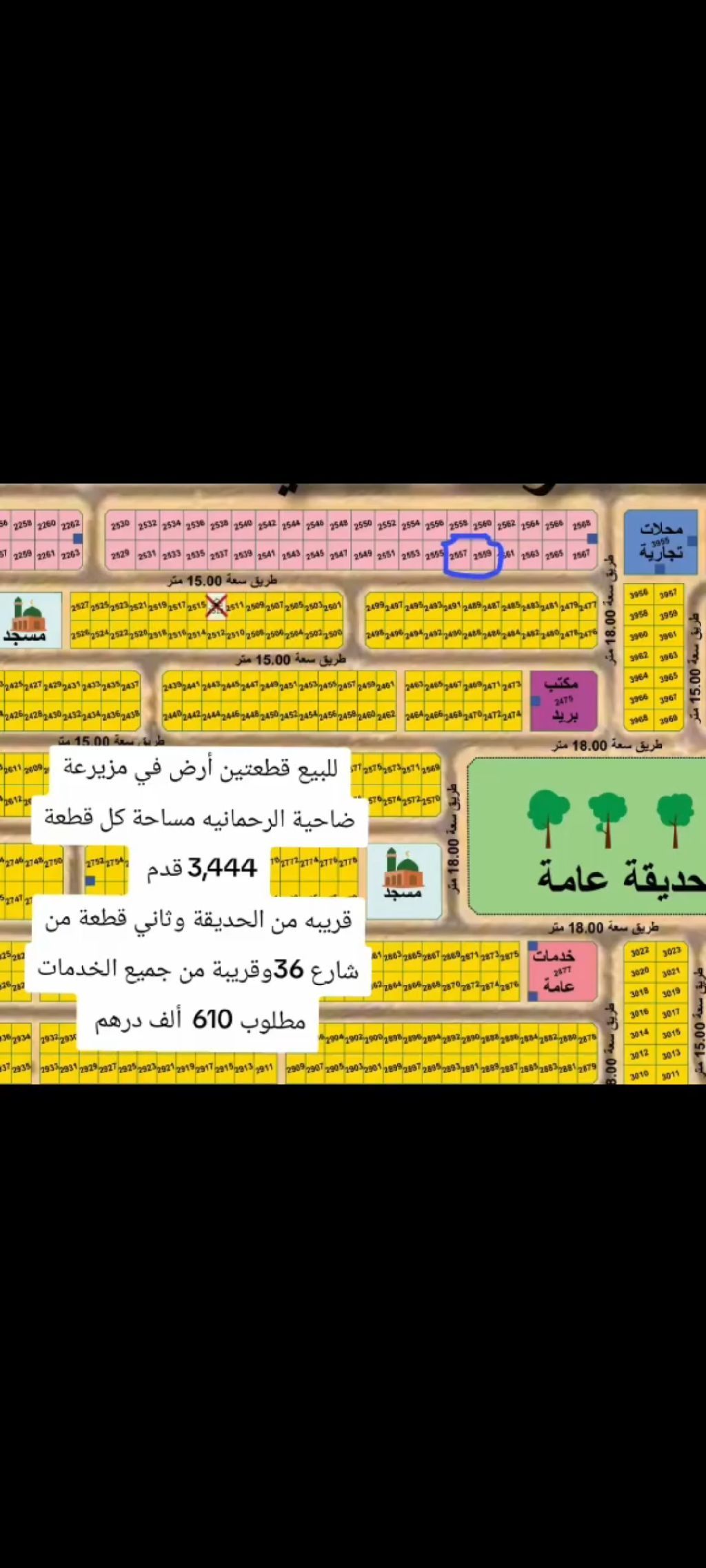 فرصة ذهبية في موقع مميز للبيع قطعتان أرض متلاصقتان في مزيرعة - ضاحية الرحمانية مساحة كل قطعة 3444 قدم، موقع ممتاز يناسب الاستثمار أو بناء فيلا عائلية. المميزات قطعتان متجاورتان يمكن شراؤهما معا أو منفصلتين. منطقة هادئة وسكنية وقريبة من جميع الخدمات. قرب المدارس والطرق الرئيسية. فرصة نادرة في منطقة مطلوبة مطلوب 610 ألف لكل قطعة